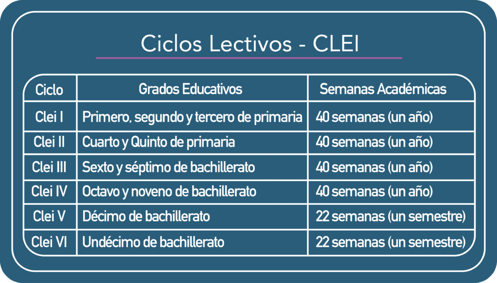 El Bachillerato por Ciclos Lectivos Especiales Integrados (CLEI) es una modalidad educativa flexible, dirigida a jóvenes y adultos que no han culminado sus estudios de educación básica y media, permitiéndoles avanzar de manera acelerada y adaptada a su edad y ritmo de aprendizaje.